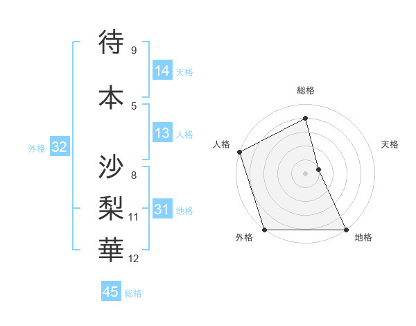 待本 沙梨華さんを姓名の画数から五運を鑑定