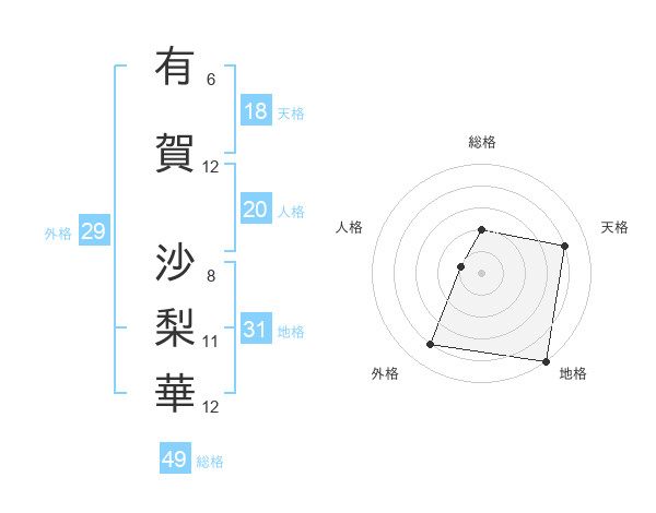 有賀 沙梨華さんを姓名の画数から五運を鑑定
