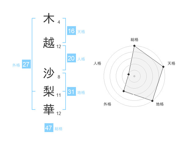 木越 沙梨華さんの地格は31画の5点!