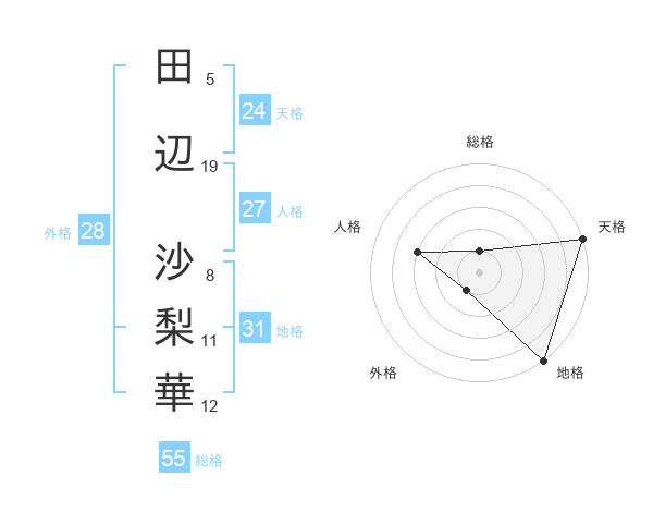 田辺 沙梨華さんを姓名の画数から五運を鑑定