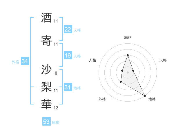 酒寄 沙梨華さんの天格は22画の1点!