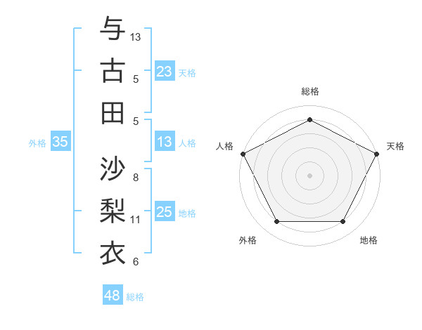 与古田 沙梨衣さんを姓名の画数から五運を鑑定