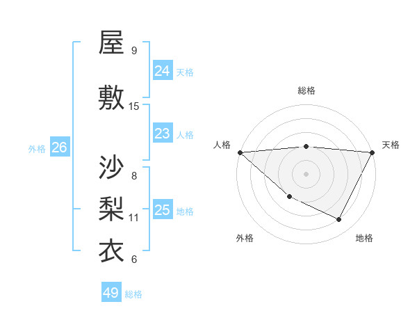 屋敷 沙梨衣さんを姓名の画数から五運を鑑定