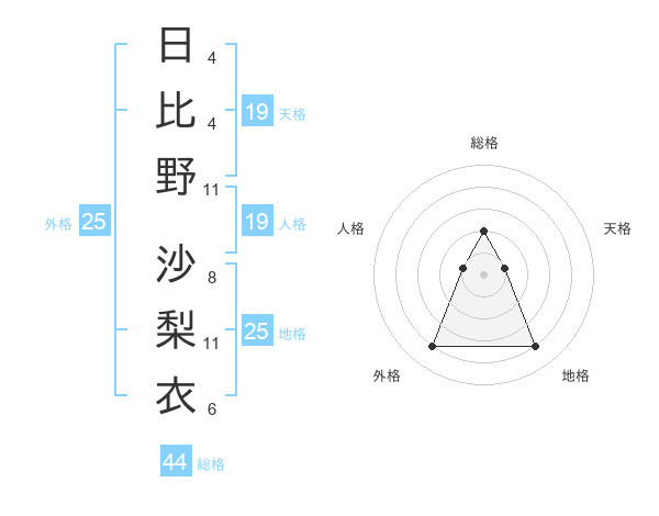 日比野 沙梨衣さんを姓名の画数から五運を鑑定