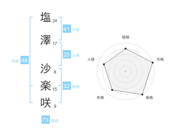 塩澤 沙楽咲さんの総格は73画の4点!