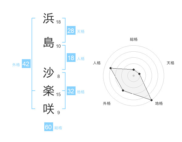 浜島 沙楽咲さんの総格は60画の1点