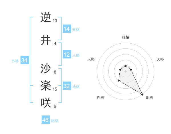 逆井 沙楽咲さんを姓名の画数から五運を鑑定