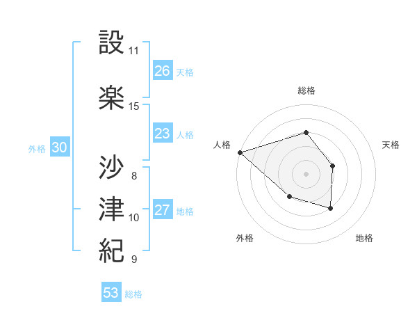 設楽 沙津紀さんを姓名の画数から五運を鑑定