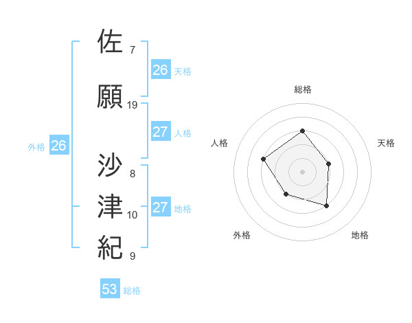 佐願 沙津紀さんを姓名の画数から五運を鑑定