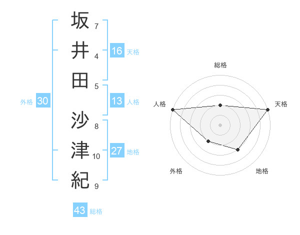 坂井田 沙津紀さんを姓名の画数から五運を鑑定