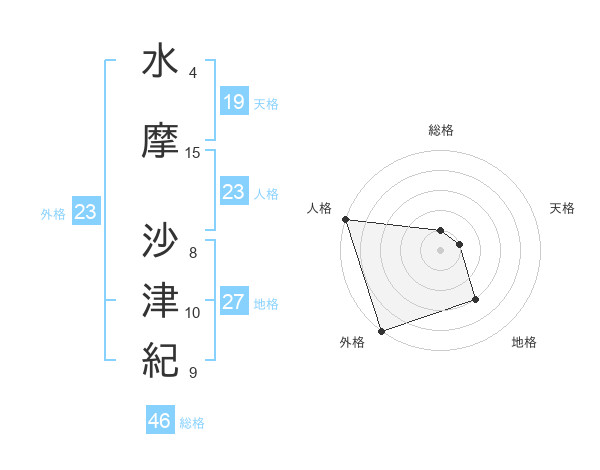 水摩 沙津紀さんを姓名の画数から五運を鑑定