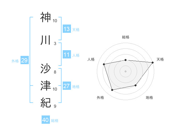 神川 沙津紀さんの天格は13画の5点!