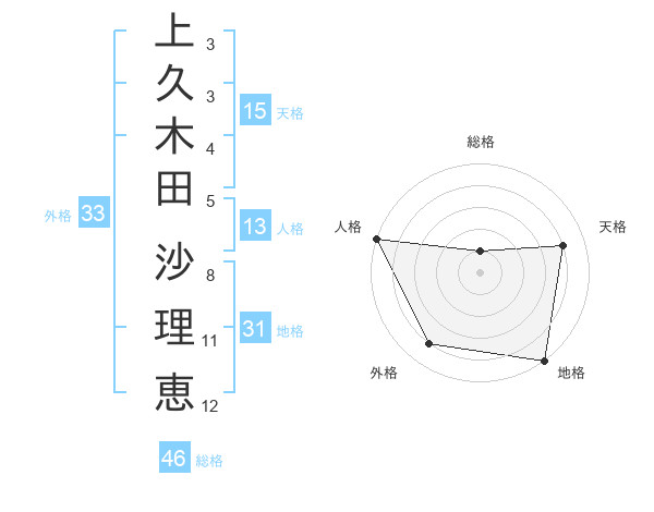 上久木田 沙理恵さんを姓名の画数から五運を鑑定