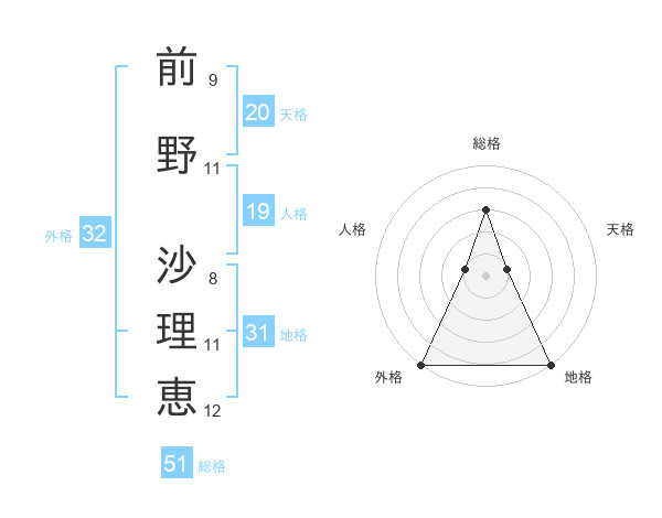 前野 沙理恵さんの総格は51画の3点!