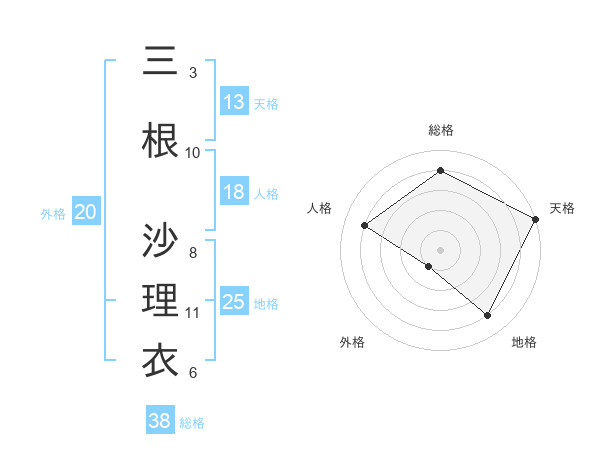 三根 沙理衣さんを姓名の画数から五運を鑑定