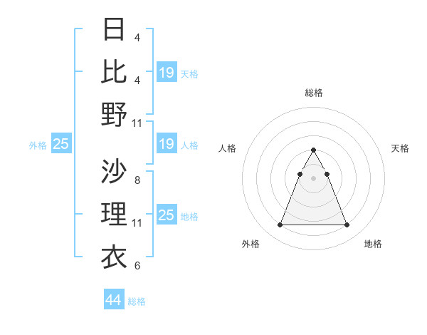 日比野 沙理衣さんを姓名の画数から五運を鑑定