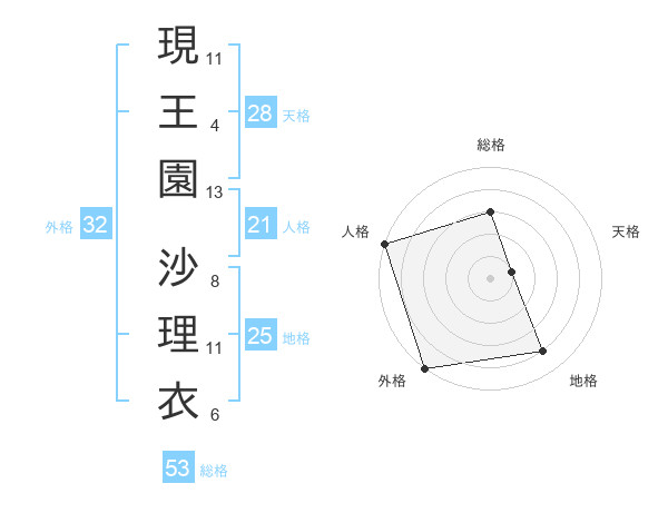 現王園 沙理衣さんを姓名の画数から五運を鑑定