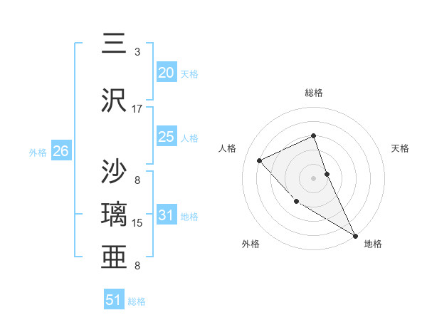 三沢 沙璃亜さんを姓名の画数から五運を鑑定