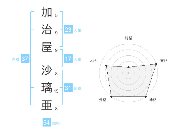 加治屋 沙璃亜さんの天格は23画の5点!
