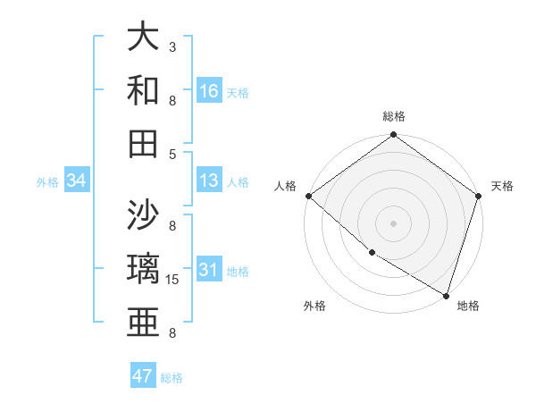 大和田 沙璃亜さんを姓名の画数から五運を鑑定