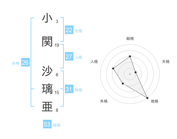 小関 沙璃亜さんの総格は53画の3点!