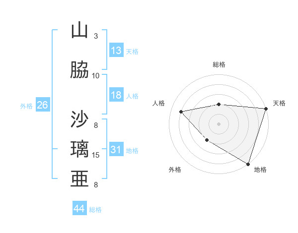 山脇 沙璃亜さんを姓名の画数から五運を鑑定
