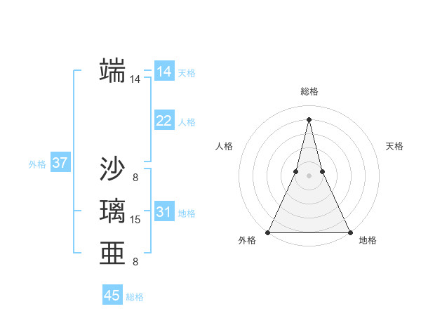 端 沙璃亜さんの総格は45画の4点!