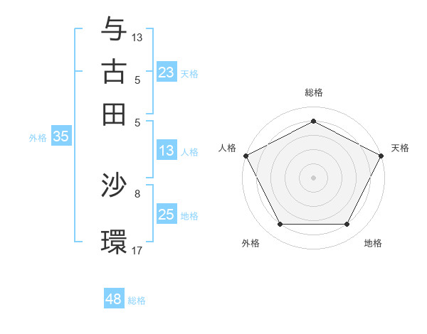 与古田 沙環さんを姓名の画数から五運を鑑定