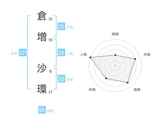 倉増 沙環さんを姓名の画数から五運を鑑定