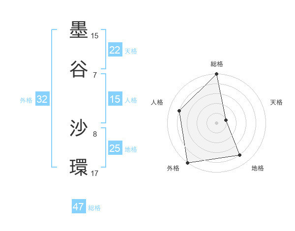 墨谷 沙環さんの総格は47画の5点!
