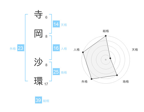 寺岡 沙環さんの外格は23画の5点!