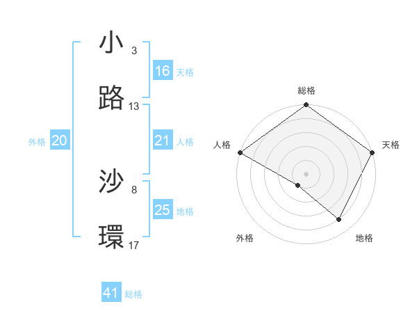 小路 沙環さんの総格は41画の5点!