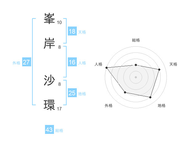 峯岸 沙環さんを姓名の画数から五運を鑑定