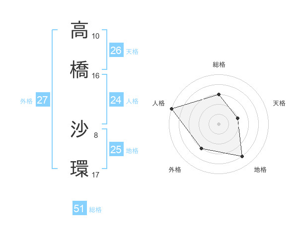 高橋 沙環さんを姓名の画数から五運を鑑定