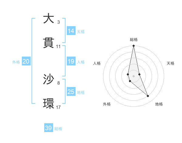 大貫 沙環さんの総格は39画の5点!