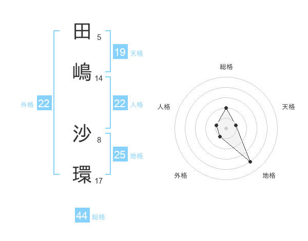 田嶋 沙環さんを姓名の画数から五運を鑑定