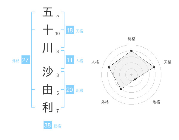 五十川 沙由利さんを姓名の画数から五運を鑑定