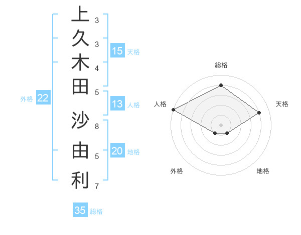 上久木田 沙由利さんの総格は35画の4点!
