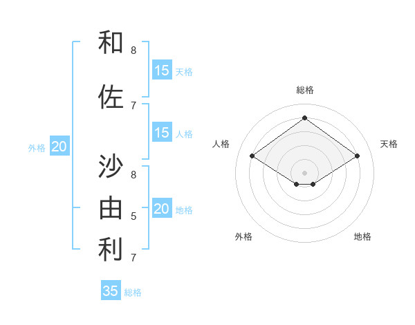 和佐 沙由利さんの天格は15画の4点!