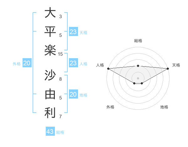 大平楽 沙由利さんの天格は23画の5点!