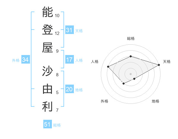 能登屋 沙由利さんを姓名の画数から五運を鑑定