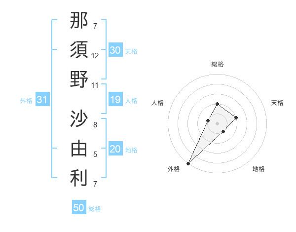 那須野 沙由利さんを姓名の画数から五運を鑑定