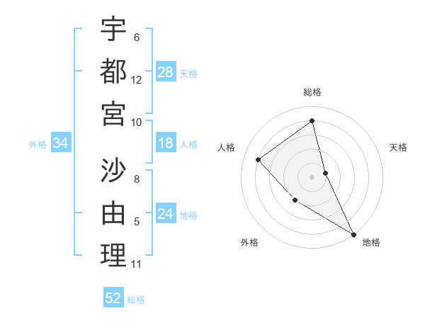 宇都宮 沙由理さんを姓名の画数から五運を鑑定