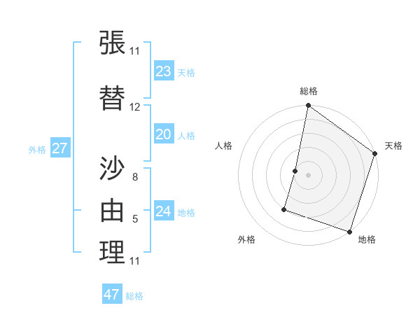張替 沙由理さんを姓名の画数から五運を鑑定