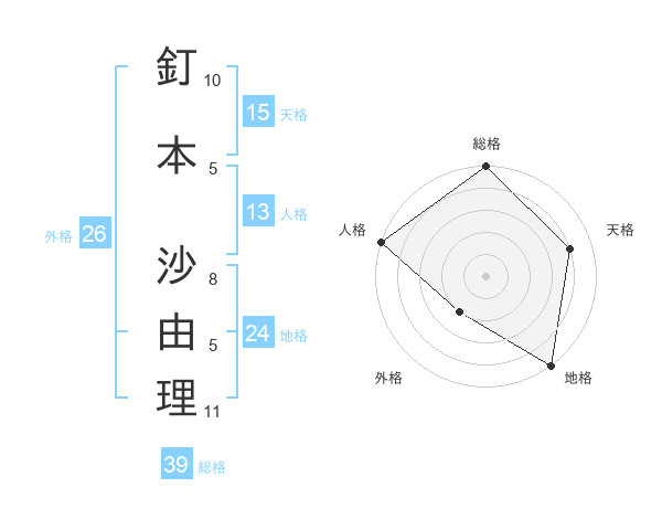 釘本 沙由理さんの総格は39画の5点!