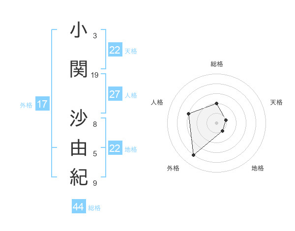 小関 沙由紀さんを姓名の画数から五運を鑑定