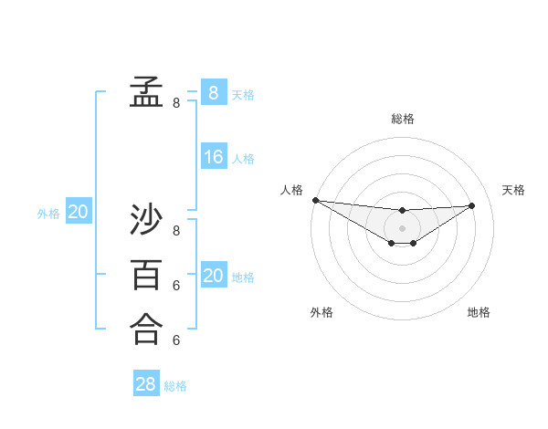 孟 沙百合さんの総格は28画の1点!