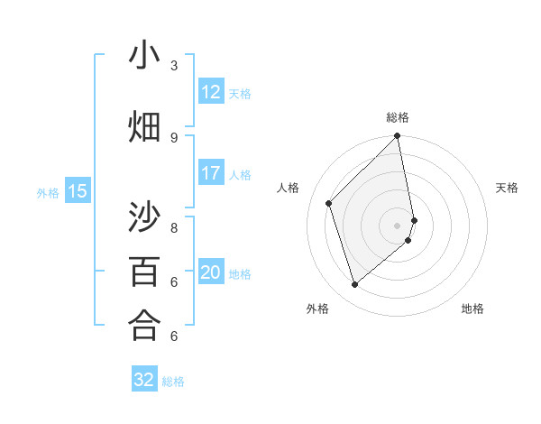 小畑 沙百合さんの天格は12画の1点!