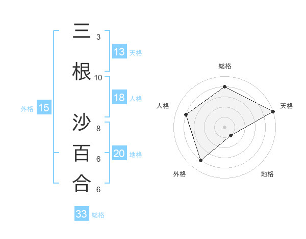 三根 沙百合さんを姓名の画数から五運を鑑定