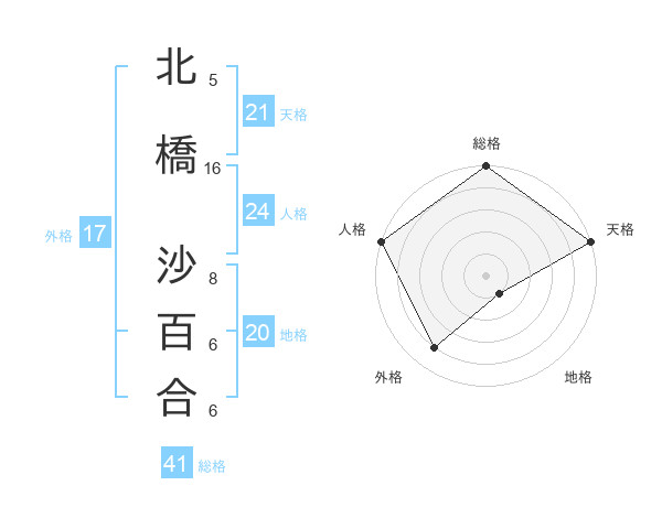 北橋 沙百合さんを姓名の画数から五運を鑑定